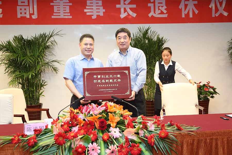 陳洪國董事長代表公司向尹同遠贈送了一份精心制作的紀念品,在紀念品的上面赫然寫著“干事創業卅六載,功成名就載史冊”,這體現了公司對他多年來工作成績的充分肯定。